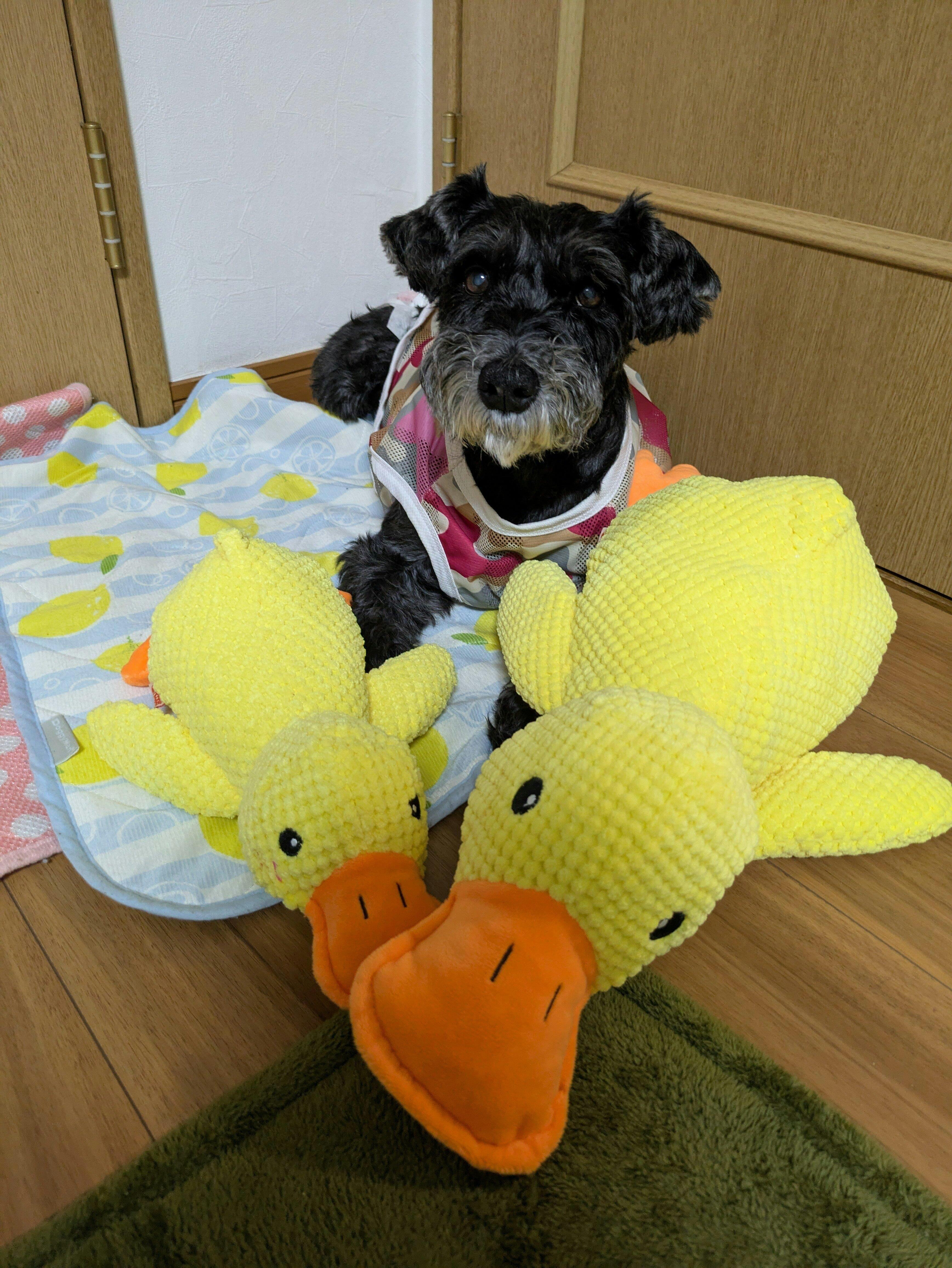 「癒しのアヒル」は犬の視覚でも目に留まりやすい黄色系のカラーでつくられているから、見つけやすくて興味を惹かれ、遊んでいるうちにお気に入りに....?